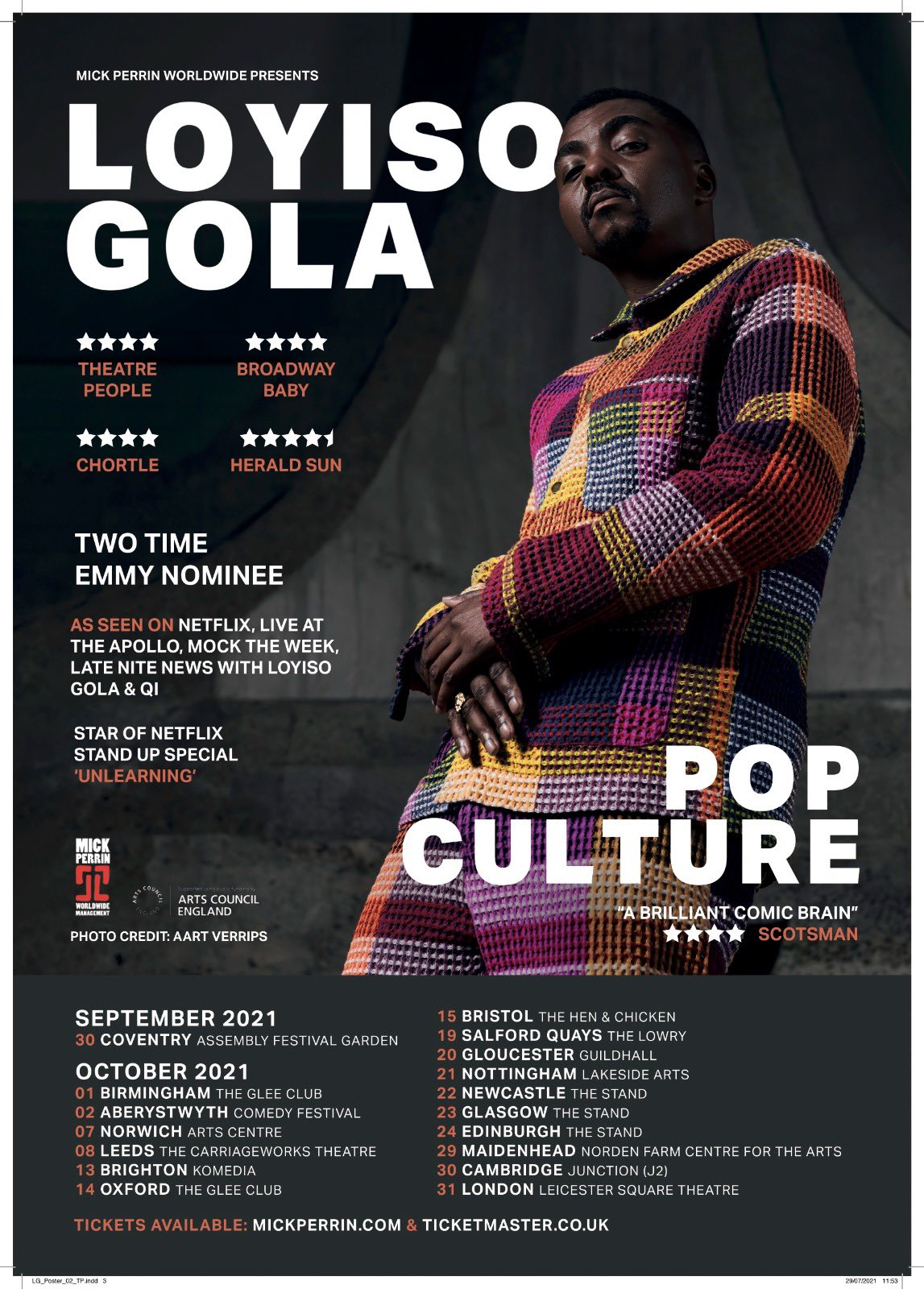 With lineups venue details and entry times. Behind his playful bewildered style is a brilliant comic brain The Scotsman An engaging. Loyiso Gola South African stand-up comedian Loyiso Gola will take his Pop Culture Tour across the UK in October 2021.